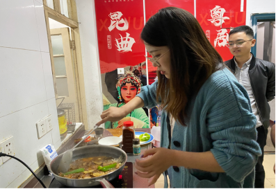 国际教育学院张佐宇、冯丽莉、武琪老师亲自下厨,精心烹饪,分别为留学生们制作了麻婆豆腐、红烧鲈鱼、番茄炒鸡蛋等传统中国美食。留学生们也都积极踊跃,烹饪各自国家咖喱鱼、油炸虾等特色美食。
