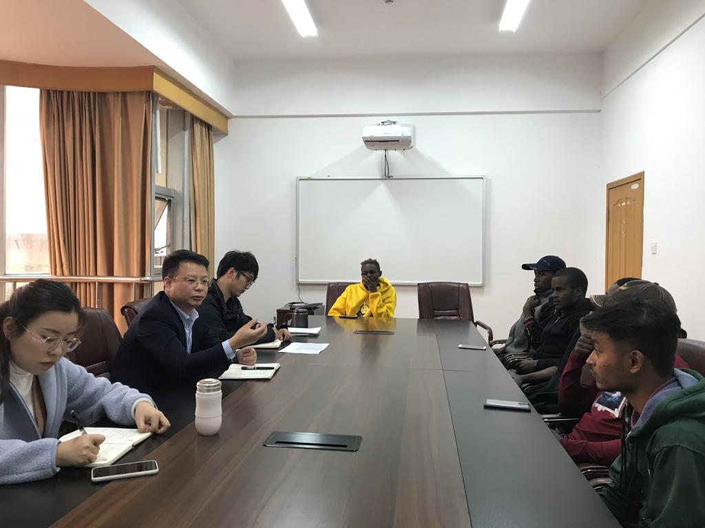 11月20日下午,国际教育学院召集了来自信息工程学院、农学园艺学院、畜牧兽医学院、风景园林学院、以及机电工程学院等5个二级学院的8名19级在校留学生代表,在综合楼5楼会议室召开期中留学生座谈会。