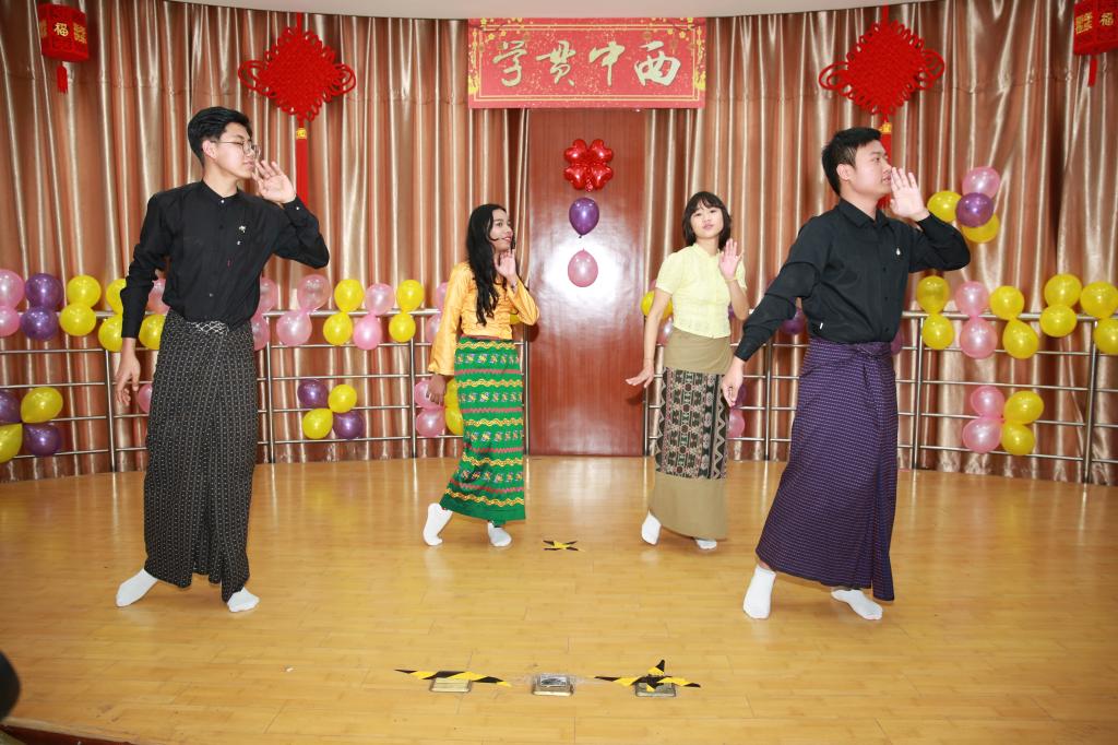 茶话会期间,由缅甸、老挝、肯尼亚、埃塞俄比亚、印度尼西亚等40位同学给大家带来了15个精彩节目,深情的演唱、富有民族特色的舞蹈、精彩的乐器演奏等各类节目轮番上演,让人眼花缭乱。马克思主义学院史远洋老师给大家带来的武术表演《武魂》、农学园艺学院副书记王全智和赵灿警官共同演绎的《Take me to your heart》更是将晚会推向了高潮,现场掌声、喝彩声此起彼伏。