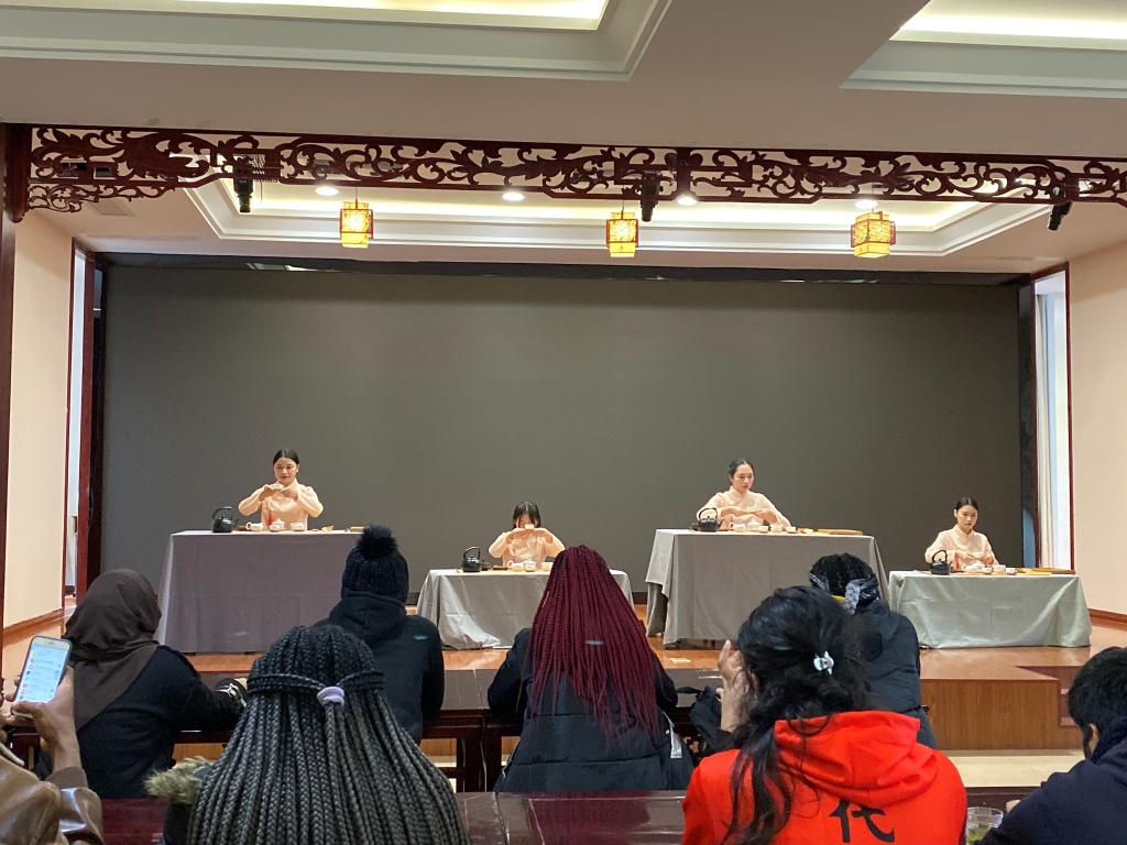 12月22号下午,江苏大学来华留学生30余名师生前来我院茶博园参观交流,开展茶文化体验与实践活动。