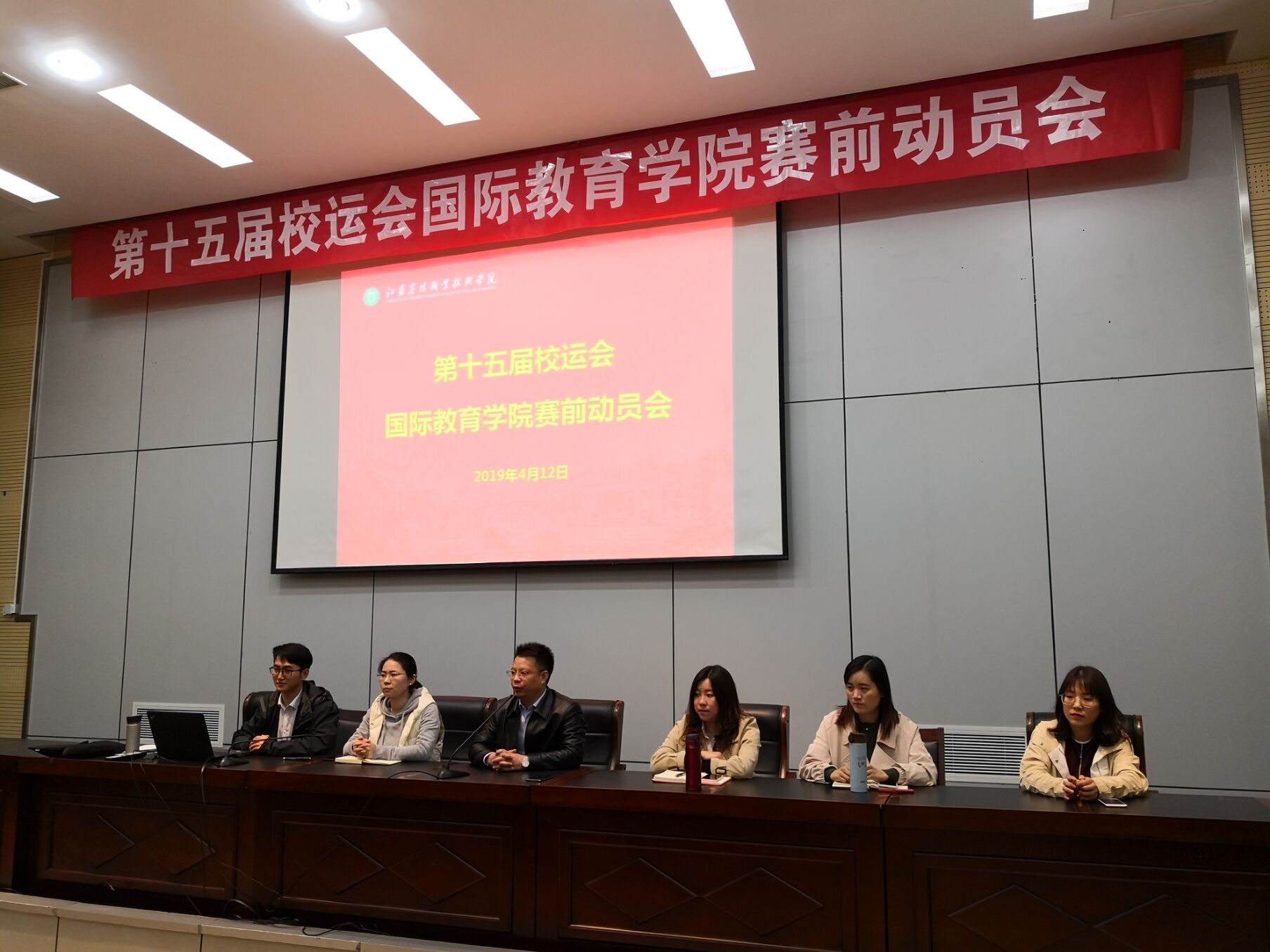 为了迎接第十五届全校运动会,4月12日下午,国际教育学院在学校研发楼报告厅隆重召开了赛前动员大会,国际教育学院直属党支部副书记(主持工作)兼副院长郭俊、国教院全体老师、全体来华大一留学生参加了此次动员大会。