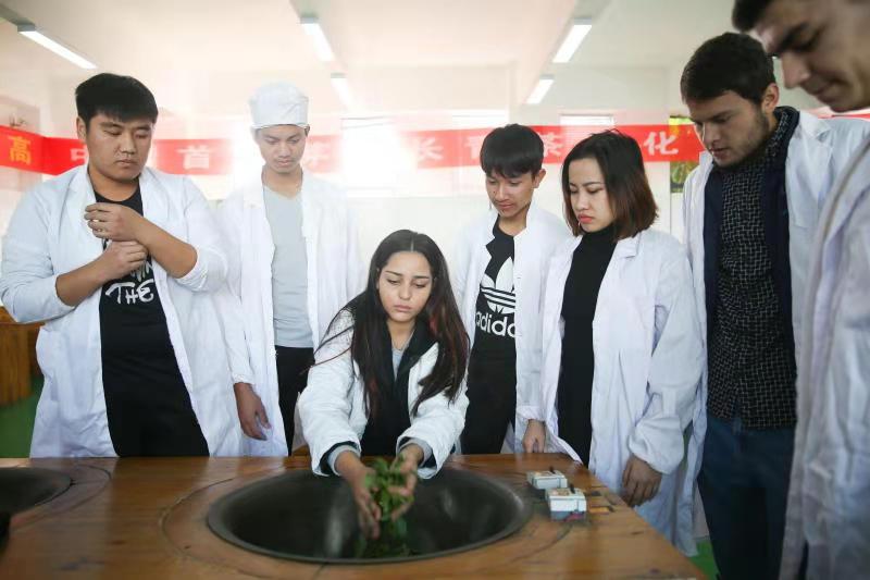 来自我院茶艺专业的优秀学生代表为留学生们精心准备了采茶的专业服装与道具,并悉心地向其传授采茶、制茶的方法。在茶艺“小老师”的指导下,留学生们充分参与了采茶、炒茶的整道工艺流程。活动的最后,在一片古典优雅的乐曲中,茶艺师向留学生展示了娴熟的茶道表演,留学生们纷纷围绕在茶艺师周围,不时地发出阵阵赞叹。