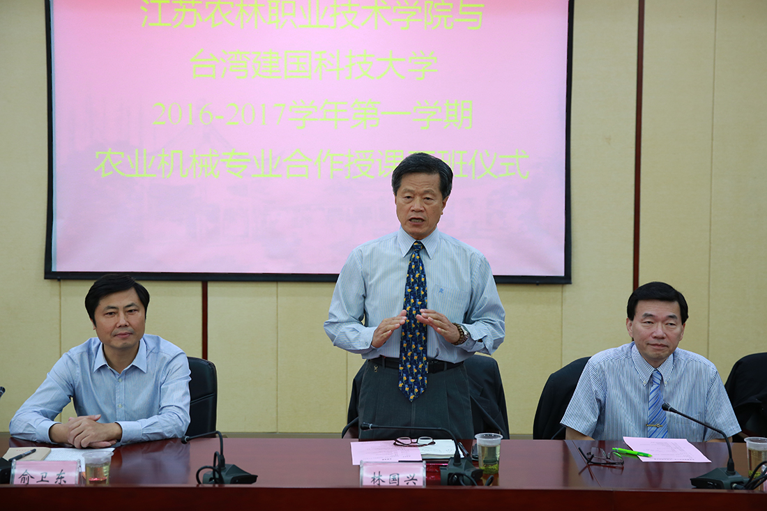 台湾建国科技大学林国兴副校长向师生们介绍了建国科大的办学历史、建国科大农业机械专业的师资力量以及陆生在建国科大研修学习情况。