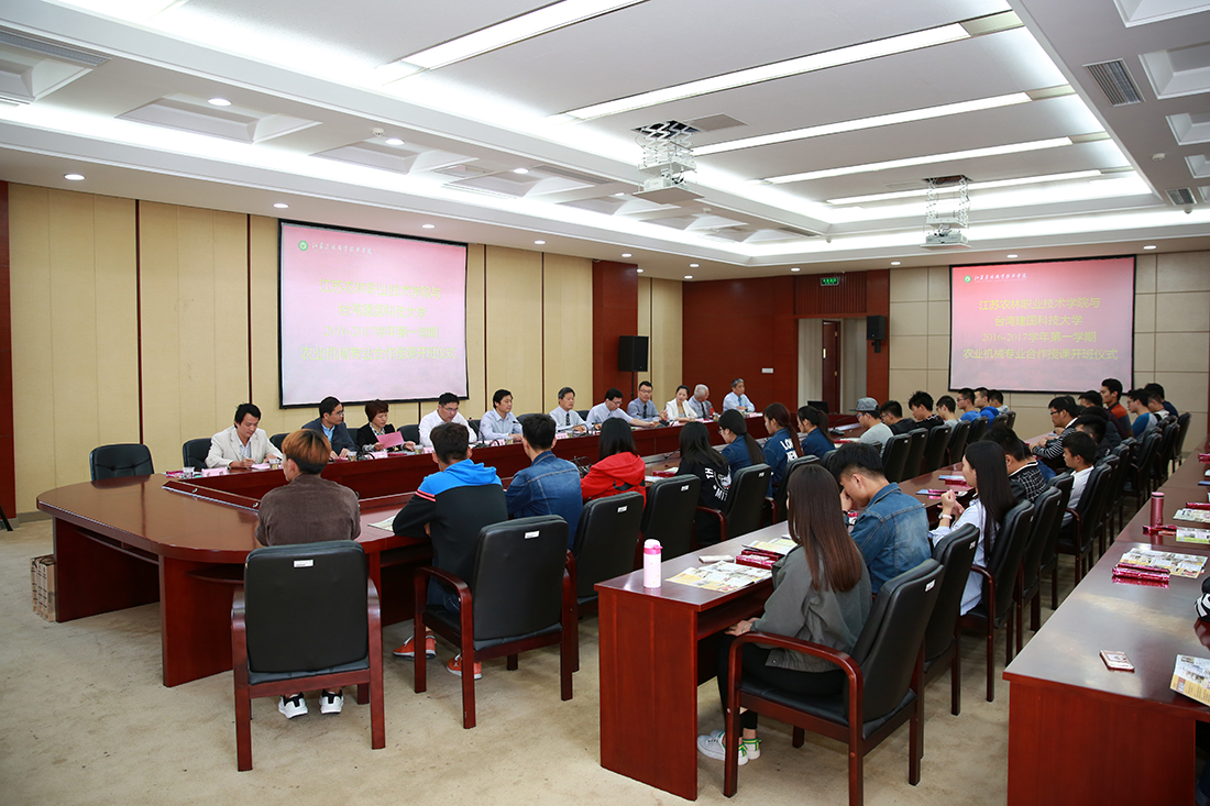 10月9日上午,学院与台湾建国科技大学2016-2017学年第一学期农业机械专业合作授课开班仪式在综合楼九楼会议室举行。台湾建国科技大学林国兴副校长、工程学院王纪瑞院长、大陆两岸交流中心林资雄主任、黄锡泉和栾家敏教授,学院领导俞卫东书记、曹仁勇副院长、教务处赵明珍处长、机电工程系刘永华主任、国际交流合作中心王瑾主任以及相关部门同志出席了开班仪式,来自机电工程系农业机械专业的40多名师生参加了活动。仪式由学院曹仁勇副院长主持。