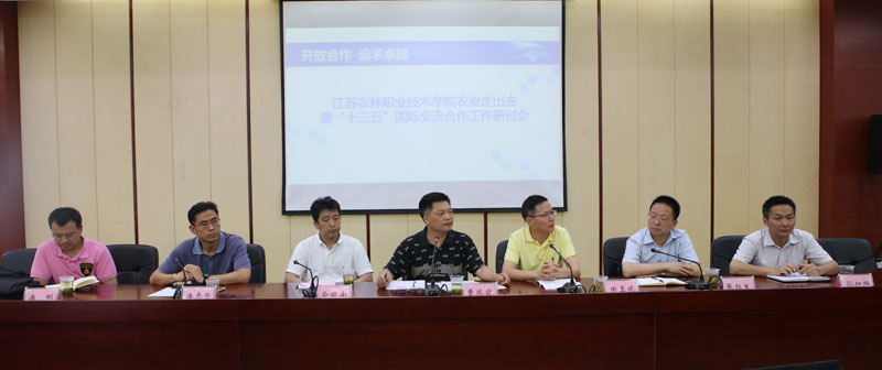 7月15日,江苏农林职业技术学院农业走出去暨“十三五”国际交流合作工作研讨会在学院综合楼九楼会议室隆重举行。省农委田玉斌研究员、省教育厅俞晓南调研员、省外办出国管理处曹凤前副处长、潘志坚主任、,南京农业大学国际合作与交流处张红生处长、省农科院国际处孙加祥处长等相关领导专家,学院党委俞卫东书记、巫建华院长、曹仁勇副院长、国际交流合作中心以及相关部门负责同志出席了研讨会。会议由学院巫建华院长主持。