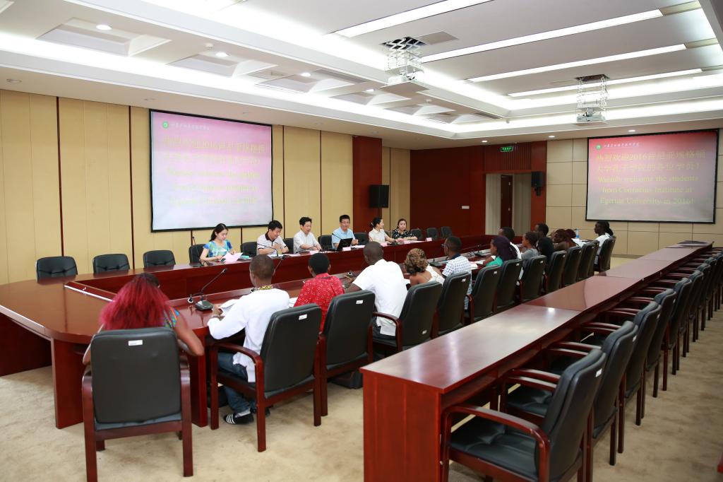 巫建华院长向来自埃格顿大学孔子学院的学员表示热烈欢迎,并向他们介绍了我院的基本概况、办学特色和国际交流等情况。学员代表Eric Wambua Makau在发言中,介绍了埃格顿大学孔子学院的办学条件、师资水平等总体情况,并代表全体学员对我院表示诚挚的感谢。