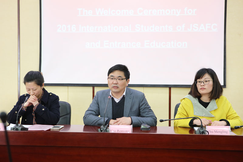 曹仁勇副院长代表学院对新同学的到来表示热烈欢迎,他希望留学生要遵纪守法、保证安全,要尽快适应全新的生活环境,努力学习、奋发向上。学院安全保卫处张义河科长从消防安全、交通安全和治安安全三方面对留学生进行了安全教育。