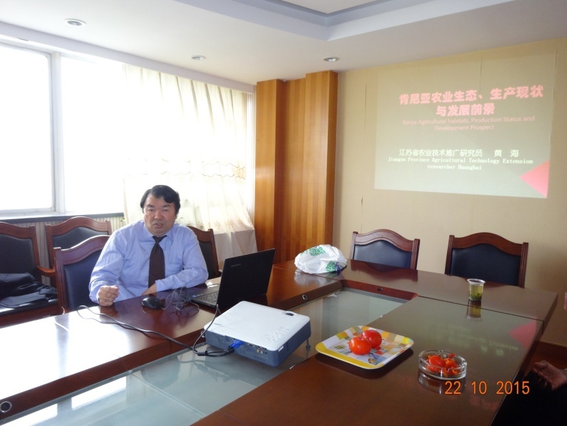 10月22日,我院黄海教授就“中国与肯尼亚在农业生态环境、生产现状的对比和对肯尼亚农业发展前景”的主题与我院肯尼亚留学生进行交流。交流会上,黄海教授从多个角度分析比较了我国与肯尼亚气候环境等因素带给农业生产的利弊。他还给留学生品尝了利用中国农业生产技术栽种的鲜红水果甜柿,并希望将该甜柿栽种技术推广到肯尼亚。随着中非文化的交流日益加深,希望今后能有更多的非洲留学生来我院学习,增进相互了解,促进中非文化交流。