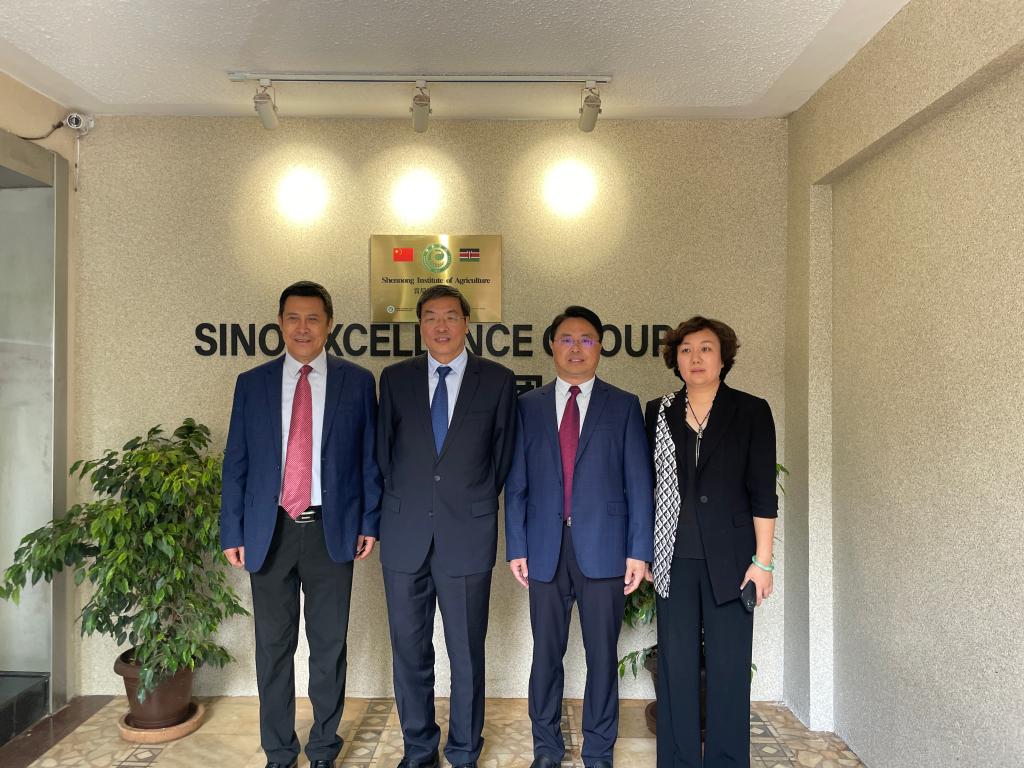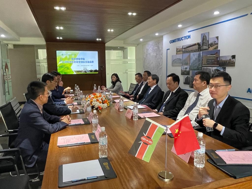 2024年4月19日,江苏省委常委、常务副省长马欣一行来到江苏华越集团驻肯尼亚办事处,实地调研了我院与江苏华越集团共建的肯尼亚神农学院,观看了神农学院建设成果展并合影。调研期间,学院党委书记简祖平做了关于神农学院建设以及学院农业国际交流合作情况的汇报,农业“走出去”企业江苏华越集团董事长郭华东表达了神农学院对助企海外发展的重要作用和意义,并汇报了公司在肯尼亚的发展情况。听取两位汇报后,马欣副省长对肯尼亚神农学院建设给予了高度肯定,希望学校进一步做强神农学院工作,为“一带一路”沿线国家提供中国农业职教方案。同时要求践行“强农兴农”使命,为农业强国建设发展贡献农林力量。