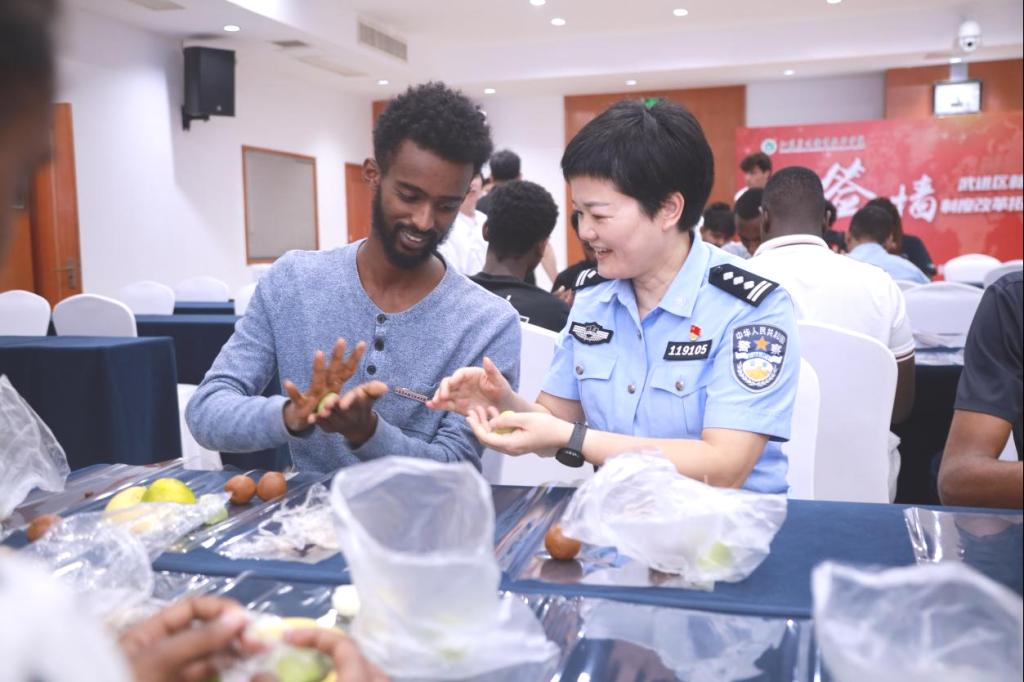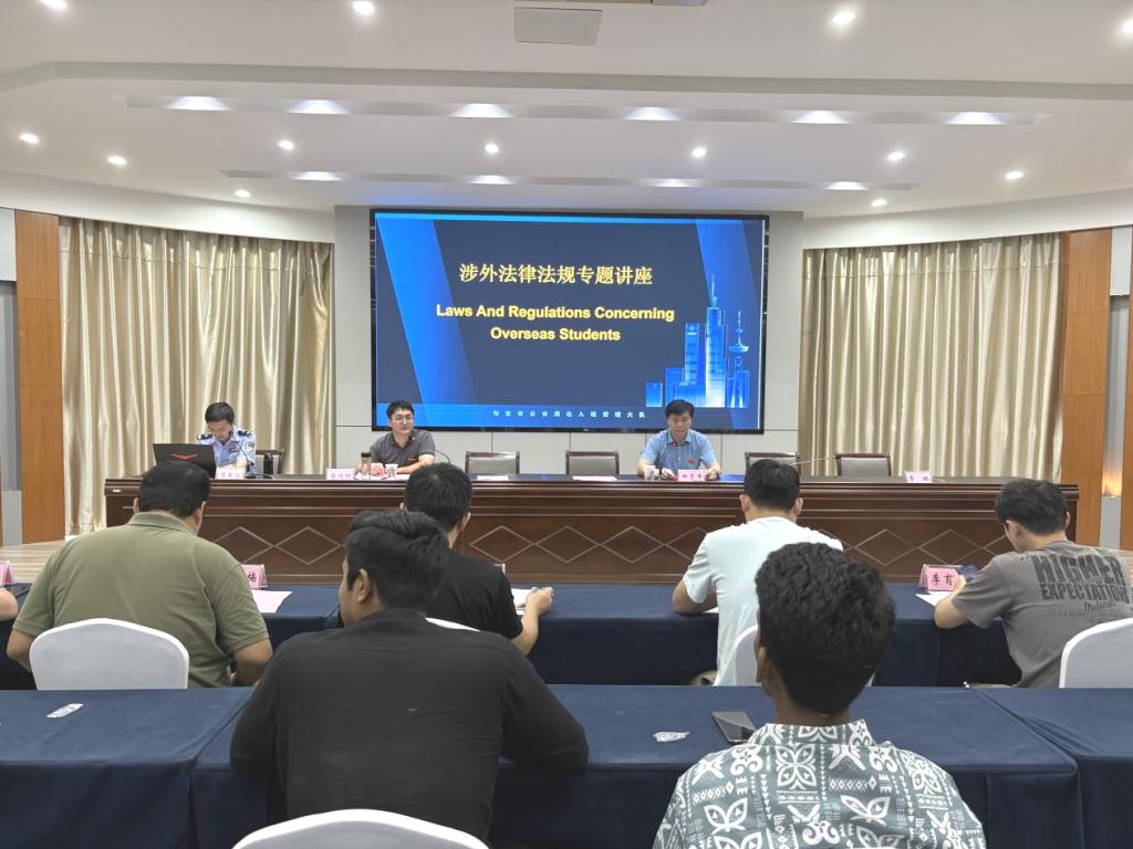 深化出入境法律与校纪校规的遵守意识。句容市公安局出入境管理大队民警笪易立从住宿登记管理、个人证件管理等方面为留学生开展了出入境管理法规专题讲座,增强了学生的法律意识和自我保护能力。蒋鸣明老师就校纪校规进行详细解读,帮助新生尽快适应校园生活。