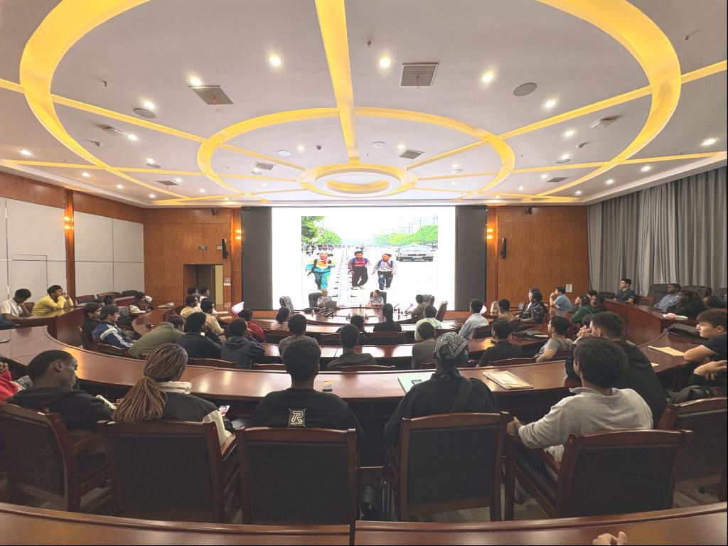 10月14日下午,国际教育学院在大学生艺术活动中心107举行新生入学教育活动。集中观看“江苏高校来华留学生开学第一课”,邀请句容市公安局交通管理大队开展交通安全讲座。