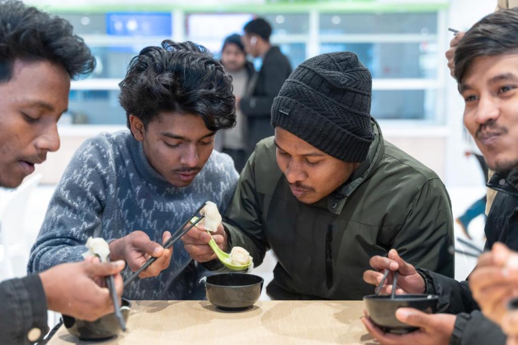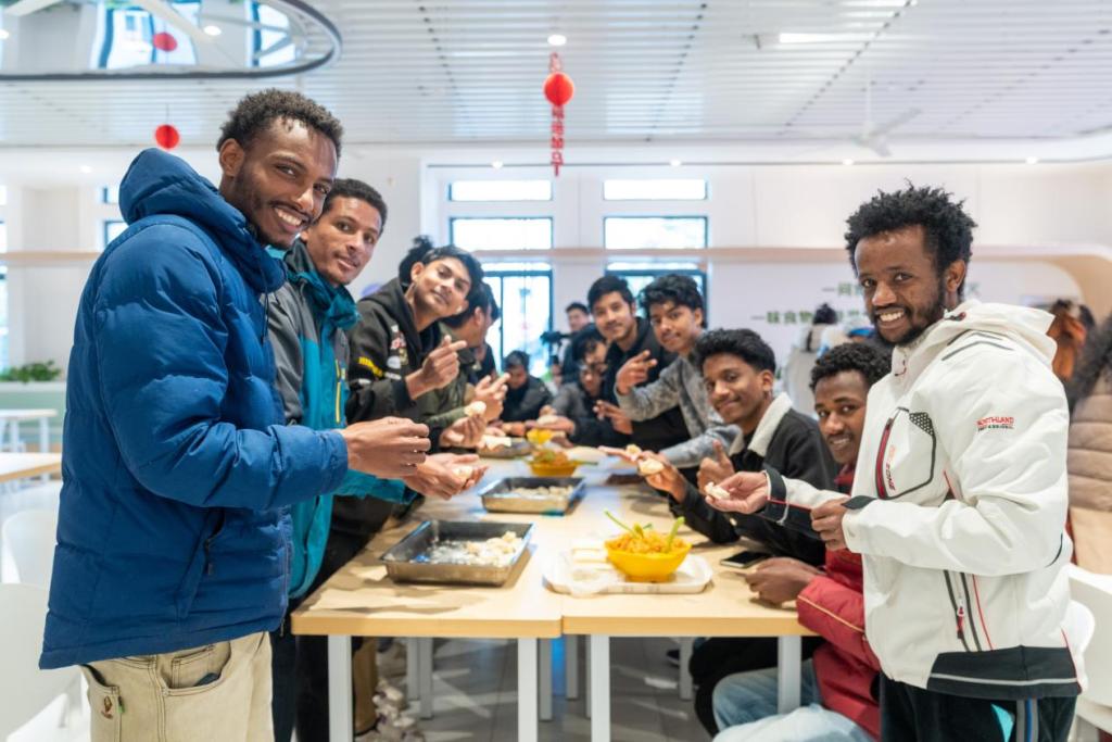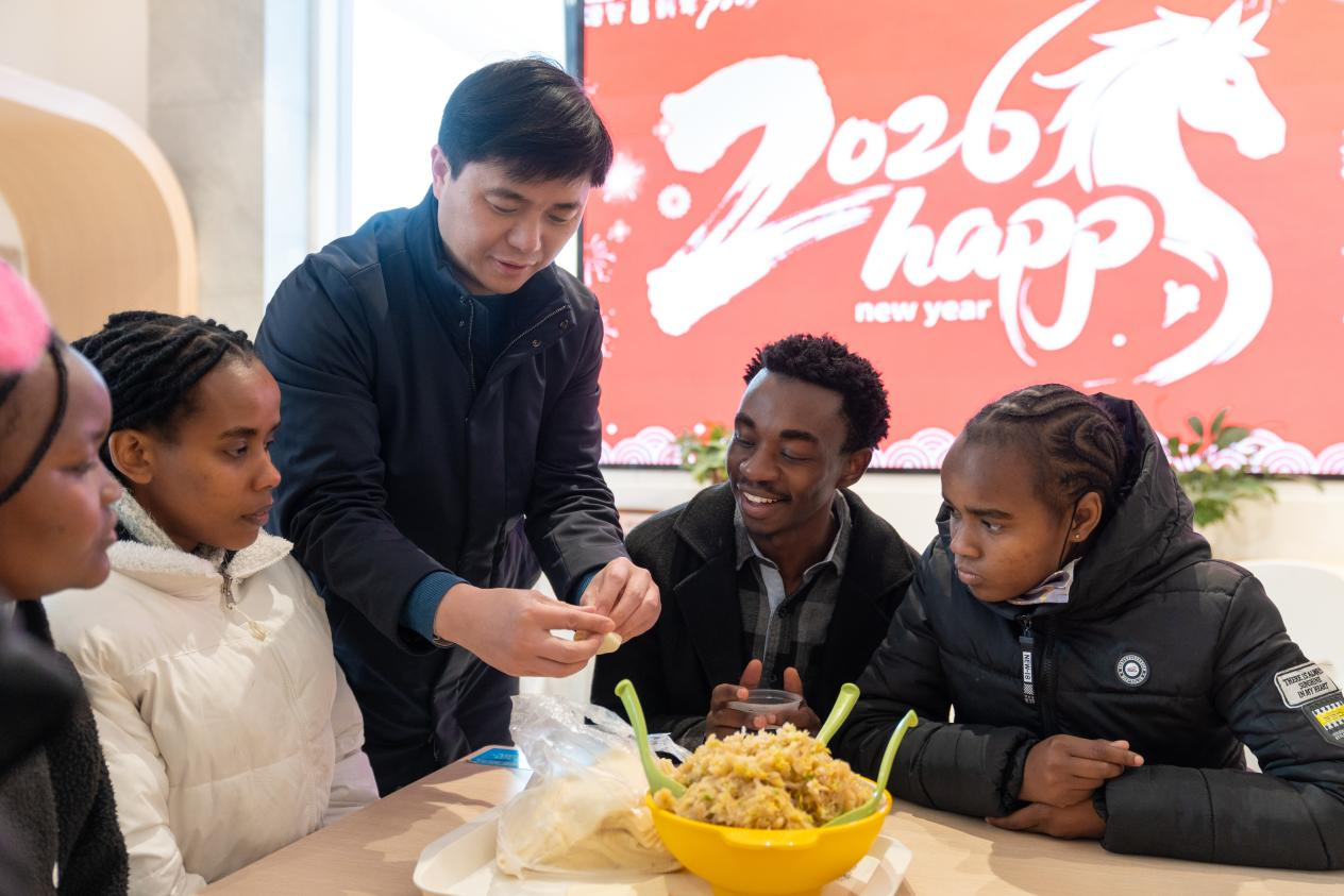 食堂变身美食工坊。师傅讲述饺子寓意:“形似元宝,也像耳朵,吃了冬天不冻耳。”老师们手把手指导,留学生们包出月牙形、小船状等创意饺子。来自孟加拉国的马尔夫包出特别的形状,笑道:“我们国家的节日食物也常做成特别造型。”当热气升腾,大家争相寻找自己的“作品”。咬下的瞬间,笑容温暖——面团里包裹的不只是馅料,更是亲手创造的温情。