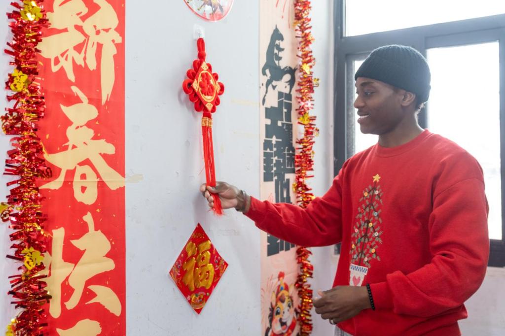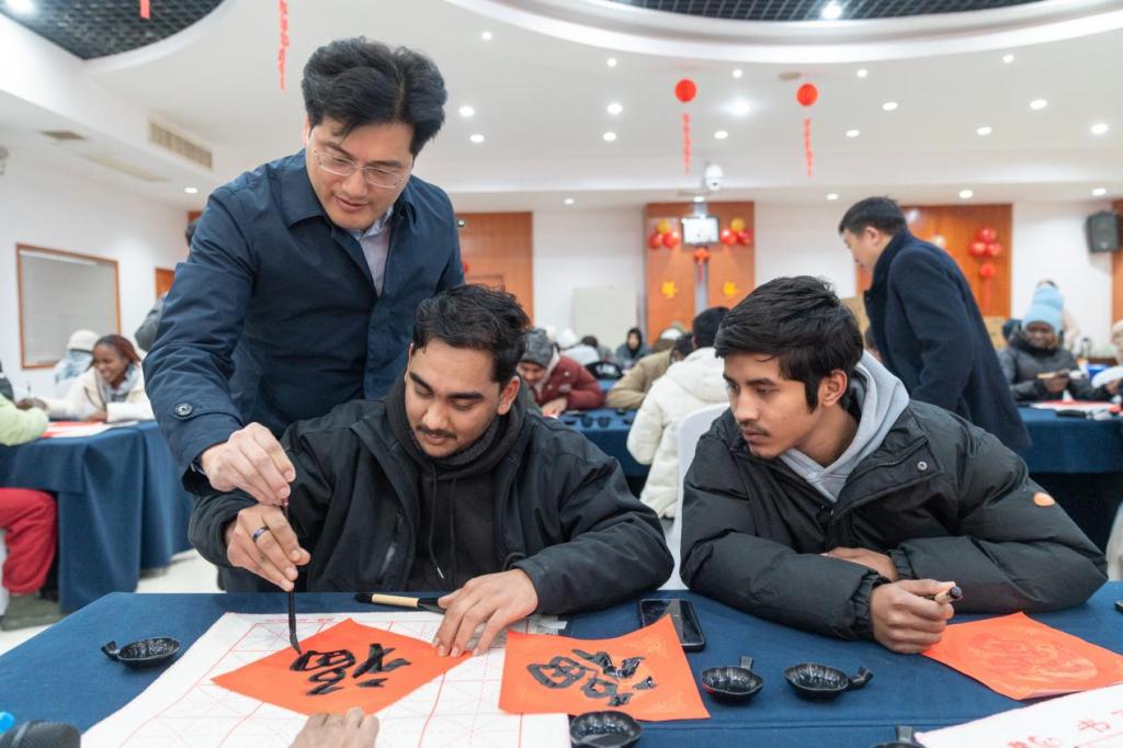 体验年俗时,留学生们也分享各自文化的节庆传统。来自印度尼西亚的娜法说:“虽然节日名称不同,但对家人的思念、对美好的向往,全世界都一样。”