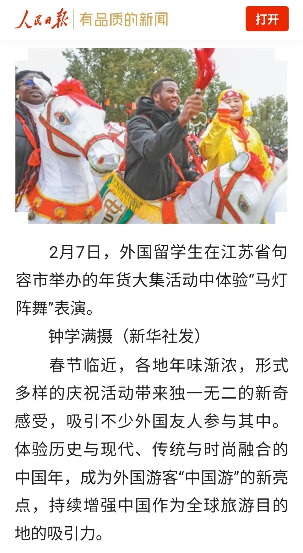 马跃新春,为庆祝马年新春的到来,以中国春节为主题对我院留学生进行中国传统文化教育,学院为留学生们精心策划并组织了逛年货大集、写“福”字、贴春联、包饺子等一系列年味十足的精彩活动,带领留学生解锁了一个地地道道的中国年!活动相继受到《人民日报》《神州学人》《凤凰网江苏》《句容发布》等媒体平台的关注与报道。
