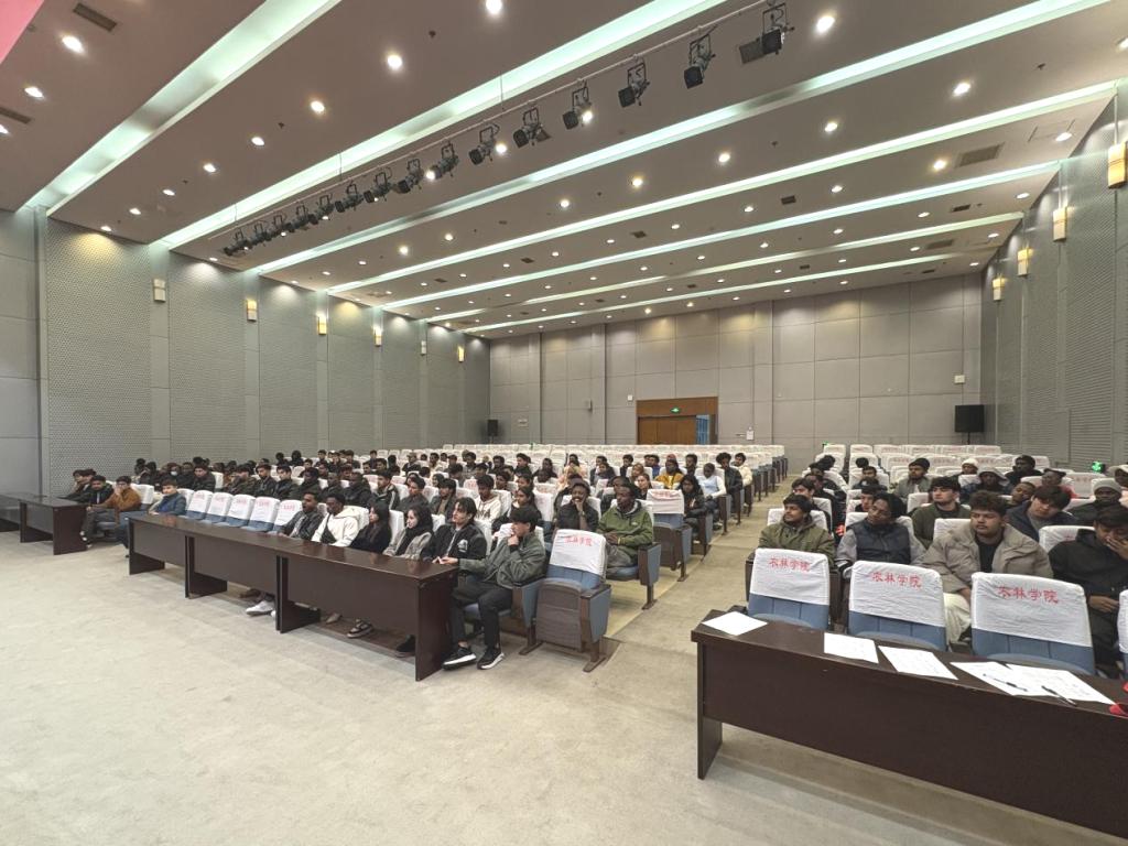 随后,国际教育学院院长杨广荣围绕学习目标、综合素质、纪律遵守、同学相处四个方面,结合具体事例对留学生提出要求。他希望留学生树立清晰学习目标,深耕专业知识、探索多元文化,兼顾学业与能力提升;并通过分享优秀留学生校友经历,鼓励大家参与校园活动,提升跨文化沟通能力,当好中外文化交融桥梁。在纪律遵守上,杨广荣院长提醒留学生严守法律法规和校纪校规,规范言行、筑牢规则意识;在同学相处上,倡导大家互帮互助、相互尊重,包容文化差异,营造和谐集体氛围。
