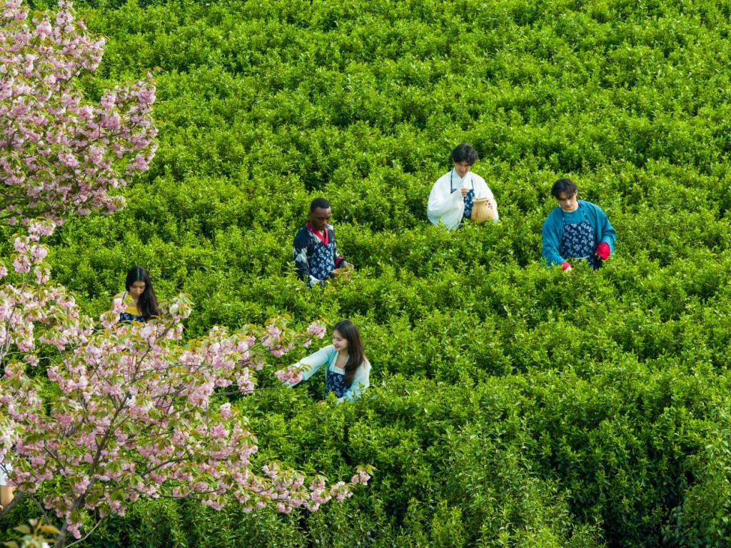 赏花写生活动结束后,留学生们前往江苏茶博园。漫山茶树萌发出新芽,茶香四溢。在茶农的指导下,大家腰间系着竹篓,学习“一芽一叶”的采摘方法,随后参观了炒青、揉捻等制茶流程,并品尝了自己参与采摘制作的新茶。“以往仅品尝过茶,却不知茶叶的制作过程如此复杂。”来自津巴布韦的留学生阿信感慨道,“从这杯茶中,我品尝到了春天的气息,也领悟了中国人‘人在草木间’的文化内涵。”