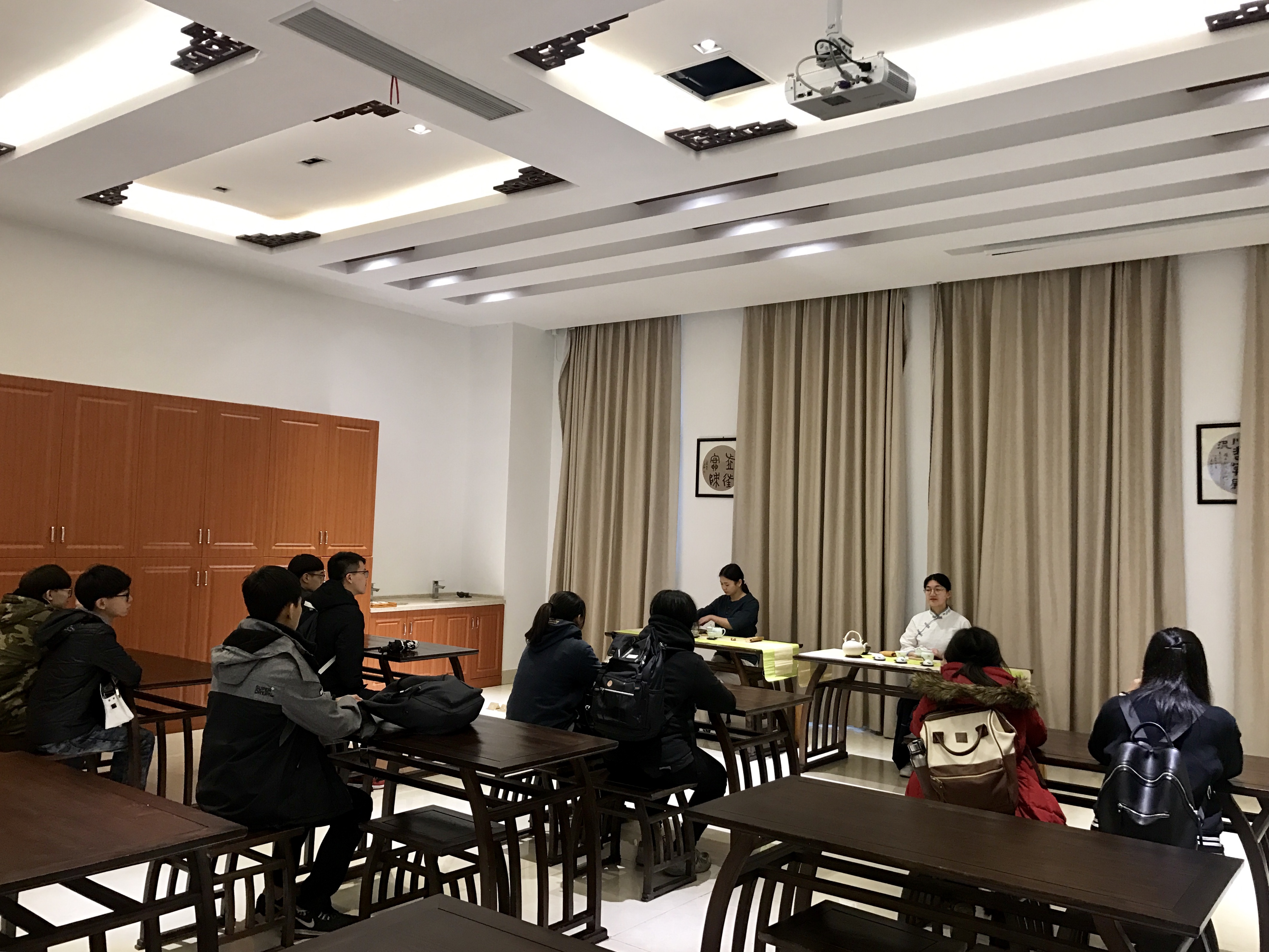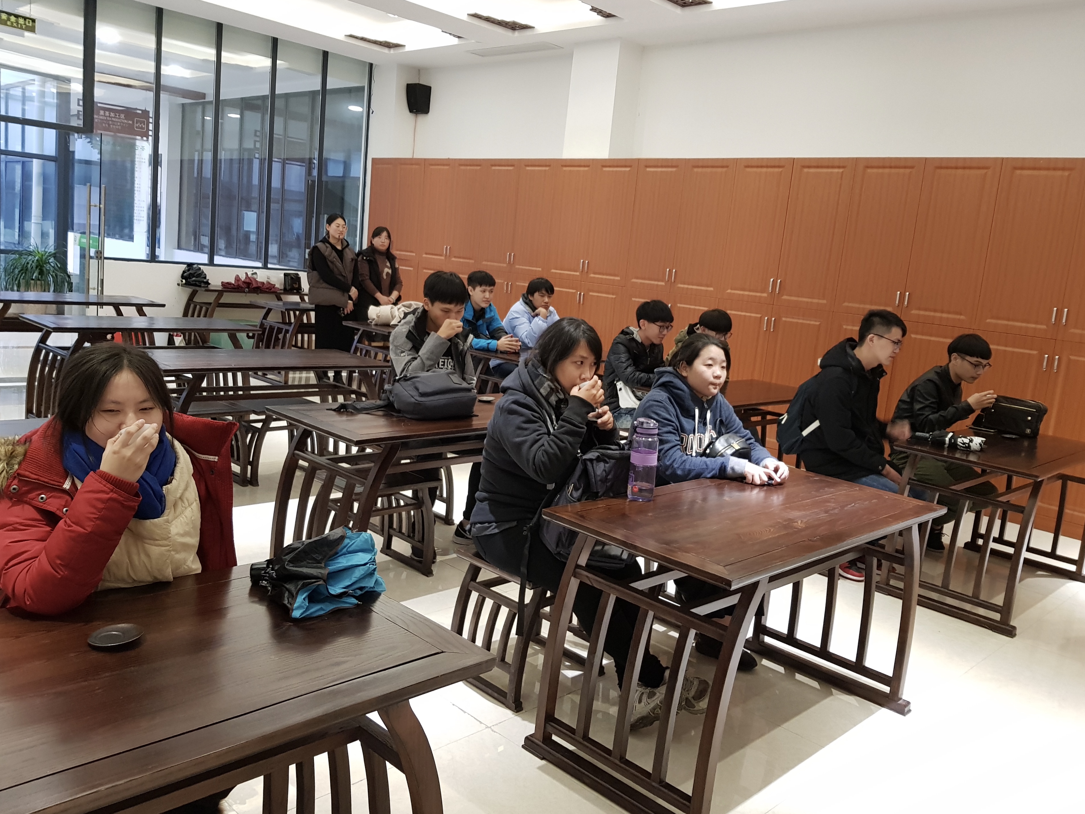 茶艺专业的学生在茶博园为台湾学子展示了娴熟的茶道表演,访问期间,王文君主任一行还参观了学院江苏农博园和江苏茶博园两大实训基地。